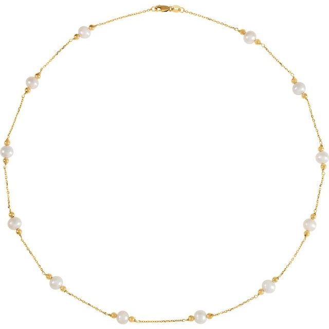Ch195 / Necklace / Set / 14K Yellow / Pearl / Cultured White Freshwater Pearl / 5 Mm / 18 In / Polished / Cultured White Freshwater Pearl And Bead Station Necklace