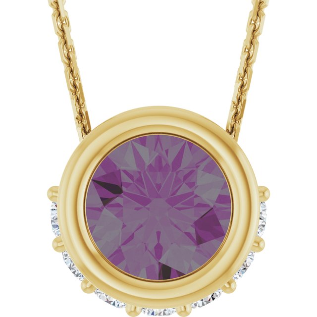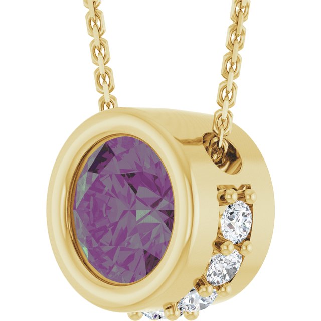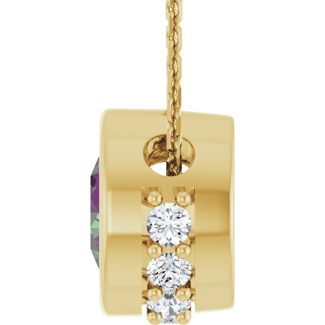 14K Yellow Lab-Grown Alexandrite & 1/10 CTW Natural Diamond 18" Necklace