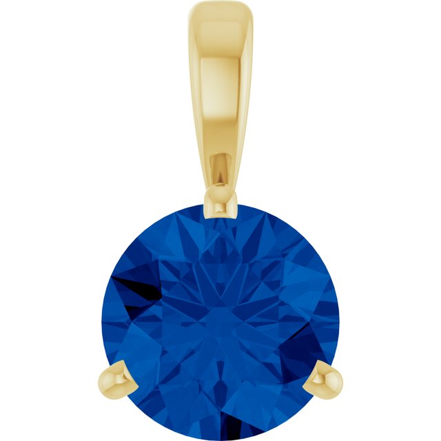 / Pendant / Set / 14K Yellow / Round / Lab-Grown Blue Sapphire / 6.5 Mm / Polished / Lab-Grown Blue Sapphire 3-Prong Basket Pendant