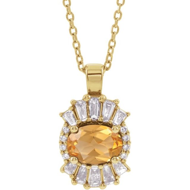 14K Yellow Natural Citrine & 1/3 CTW Natural Diamond 16-18" Necklace