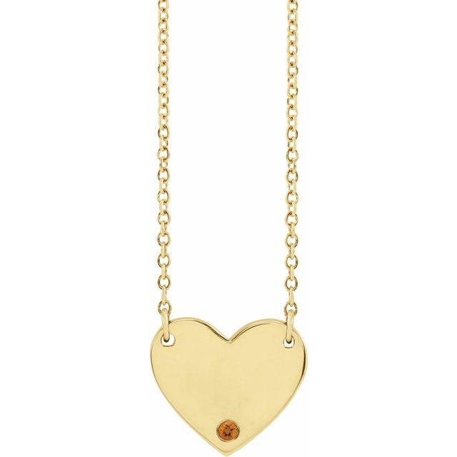 14K Yellow Natural Citrine Engravable Heart 18" Necklace
