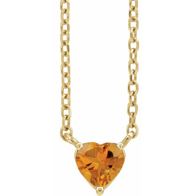/ Necklace / Set / 14K Yellow / Heart / Natural Citrine / 4 X 4 Mm / 16-18 In / Polished / Natural Citrine Solitaire Necklace