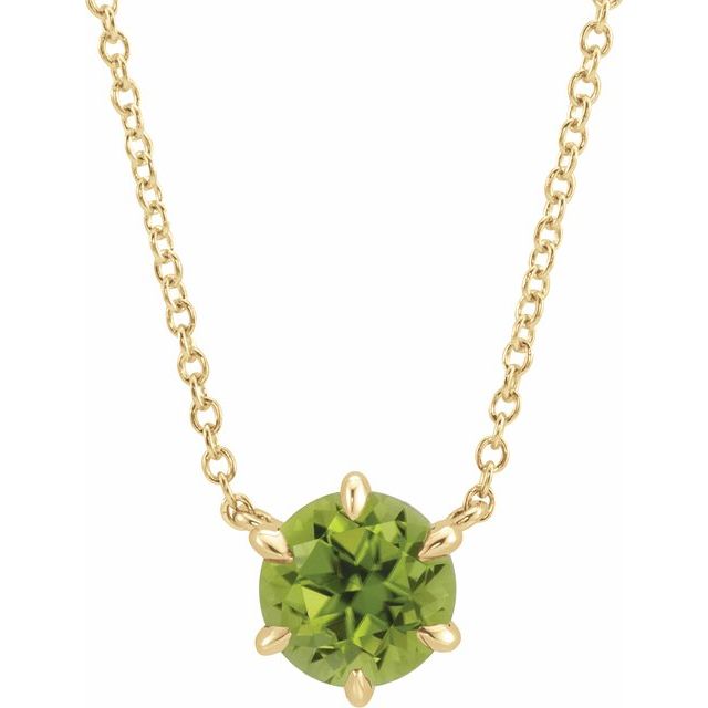 / Necklace / Set / 14K Yellow / Round / Natural Peridot / 4.5 Mm / 16 In / Polished / Natural Peridot Solitaire Necklace