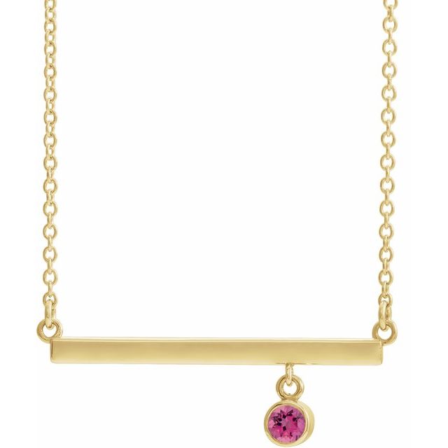 / Necklace / Set / 14K Yellow / Round / Natural Pink Tourmaline / 3 Mm / 18 In / Polished / Natural Pink Tourmaline 18 In Bar Necklace