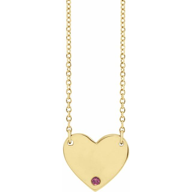 14K Yellow Natural Pink Tourmaline Engravable Heart 18" Necklace