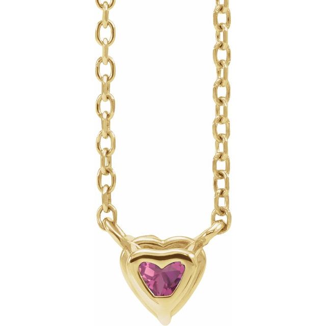 14K Yellow Natural Pink Tourmaline Heart 16-18" Necklace