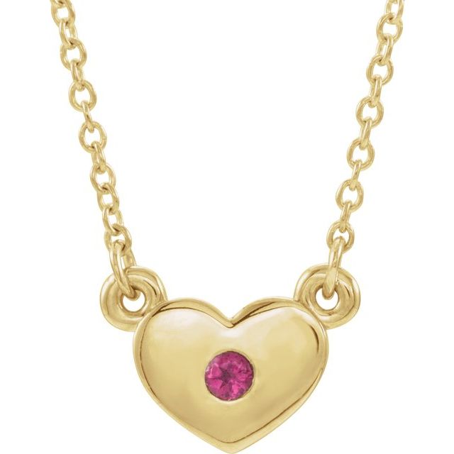 14K Yellow Natural Pink Tourmaline Heart 16" Necklace