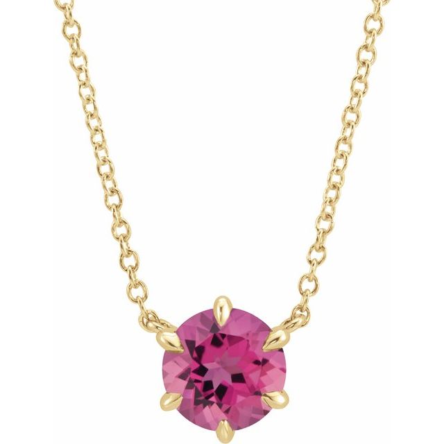 / Necklace / Set / 14K Yellow / Round / Natural Pink Tourmaline / 4 Mm / 16 In / Polished / Natural Pink Tourmaline Solitaire Necklace