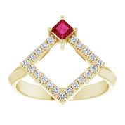 / Ring / Set / 14K Yellow / Natural Ruby / Square / 3 X 3 Mm / Natural Diamond / Polished / Natural Ruby And 1/5 Ctw Natural Diamond Geometric Ring