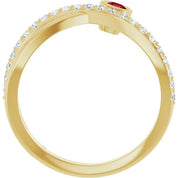 / Ring / Set / 14K Yellow / Natural Ruby / Round / 3 Mm / Natural Diamond / Polished / Natural Ruby And 1/5 Ctw Natural Diamond Criss-Cross Ring