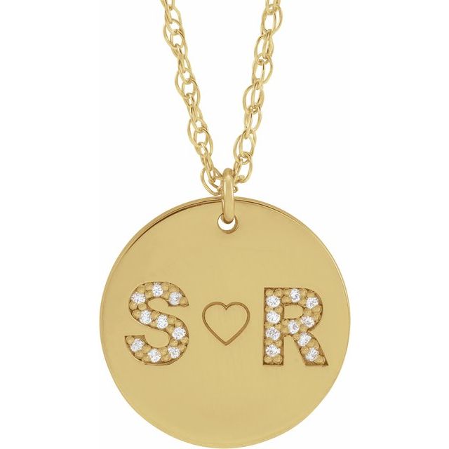 / Necklace / Set / 14K Yellow / Round / Natural Diamond / 1 Mm / I1, H-I / 18 In / Polished / Natural Diamond Couples Initial Disc Necklace