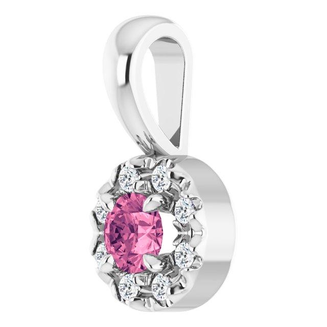 Platinum 3 mm Natural Pink Tourmaline & .03 CTW Natural Diamond Halo-Style Pendant
