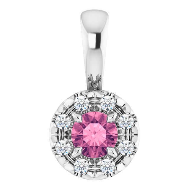 Description: Natural Pink Tourmaline And .03 Ctw Natural Diamond French-Set Halo-Style Pendant