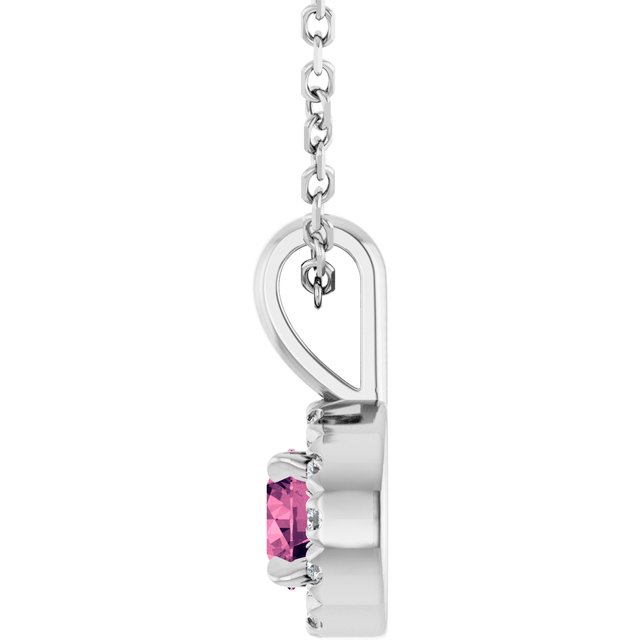 Platinum 4 mm Natural Pink Tourmaline & .05 CTW Natural Diamond 16-18" Necklace