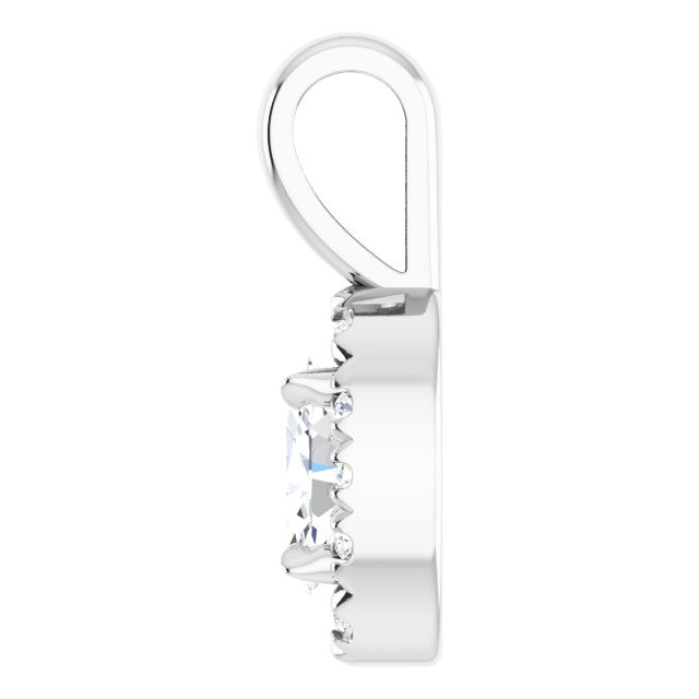 Platinum 5x3 mm Natural White Sapphire & .05 CTW Natural Diamond Halo-Style Pendant