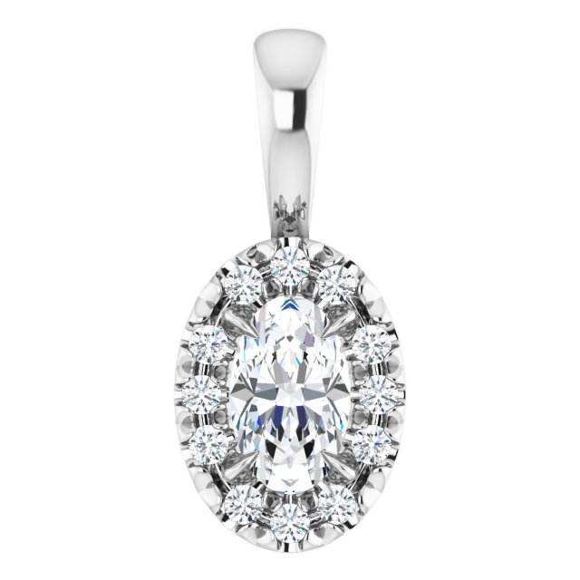 / Pendant / Set / Platinum / Oval / Natural White Sapphire / 5 X 3Mm :: 0.05 Ctw / Natural Diamond / Si2-Si3, G-H / Polished / Natural White Sapphire And .05 Ctw Natural Diamond French-Set Halo-Style Pendant