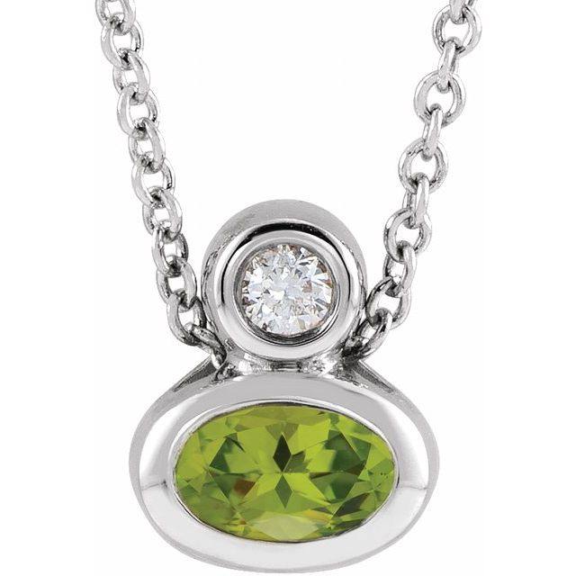 / Necklace / Set / Platinum / Oval / Natural Peridot / 5 X 3Mm :: 0.03 Ct / Natural Diamond / Si2-Si3, G-H / 16-18 In / Polished / Natural Peridot And .03 Ct Natural Diamond Bezel-Set Necklace