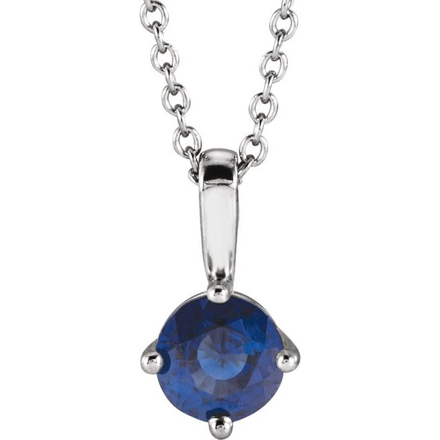 Platinum 6 mm Natural Blue Sapphire Solitaire 16-18" Necklace