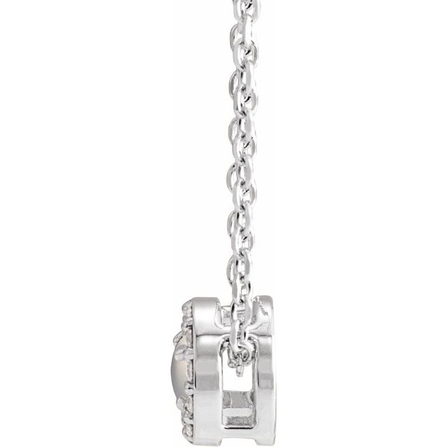 Platinum Cabochon Natural Rainbow Moonstone & .05 CTW Natural Diamond Halo-Style 16-18" Necklace