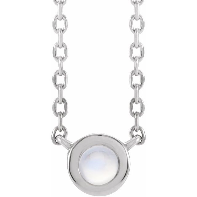/ Necklace / Set / Platinum / Round / Natural Rainbow Moonstone / 3 Mm / 18 In / Polished / Cabochon Natural Rainbow Moonstone Solitaire Bezel-Set Necklace