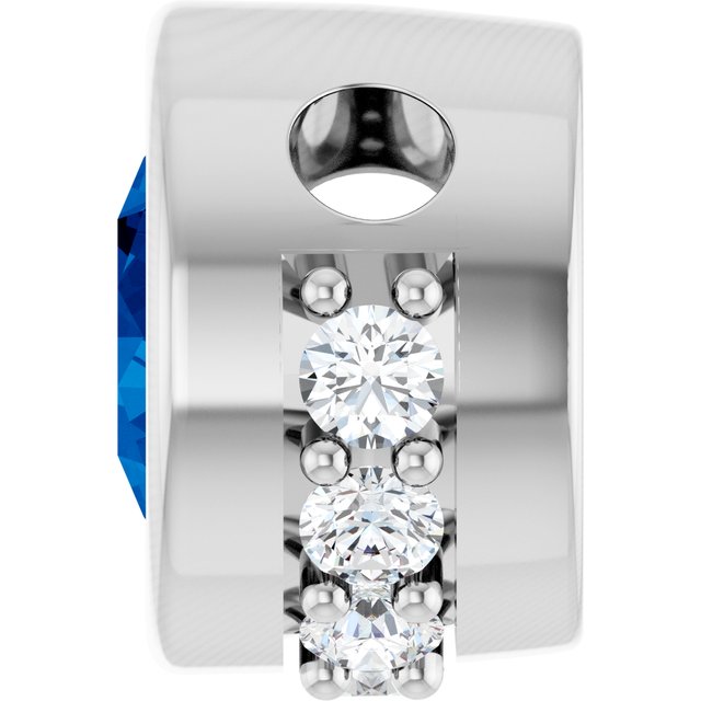Description: Lab-Grown Blue Sapphire And 1/10 Ctw Natural Diamond Pendant