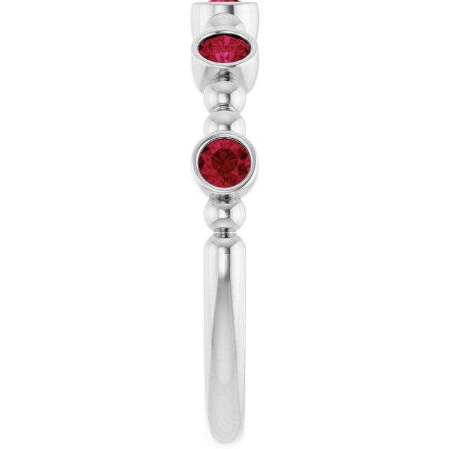 Description: Lab-Grown Ruby Stackable Beaded Ring