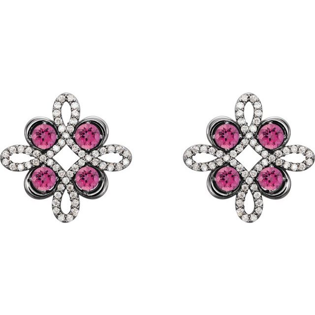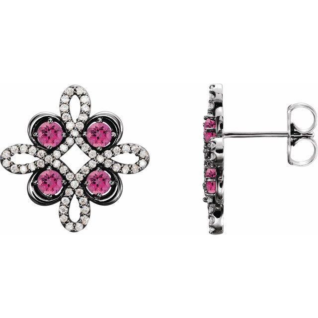 Platinum Natural Pink Tourmaline & 1/4 CTW Natural Diamond Earrings