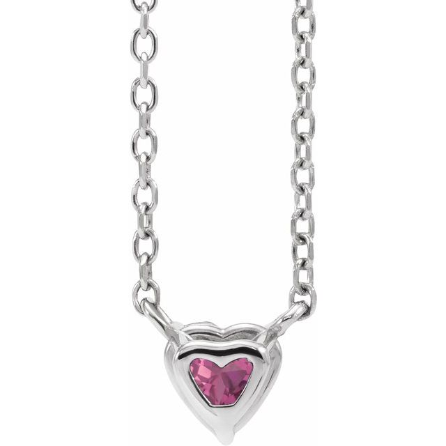 / Necklace / Set / Platinum / Heart / Natural Pink Tourmaline / 4 X 4 Mm / 16-18 In / Polished / Natural Pink Tourmaline Solitaire Necklace