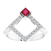 / Ring / Set / Platinum / Natural Ruby / Square / 3 X 3 Mm / Natural Diamond / Polished / Natural Ruby And 1/5 Ctw Natural Diamond Geometric Ring