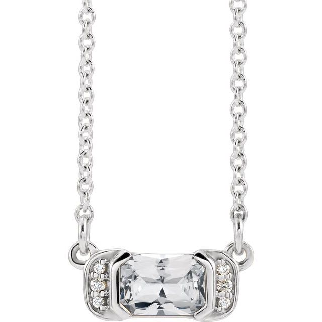 Description: Natural White Sapphire And .02 Ctw Natural Diamond Bar Necklace