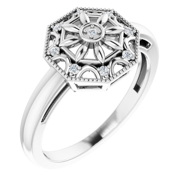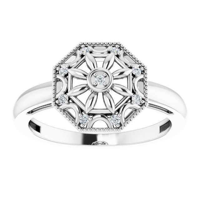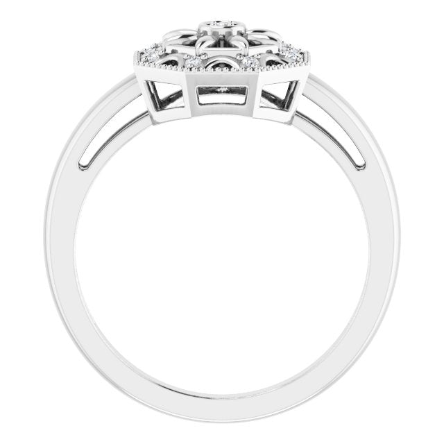 Sterling Silver .05 CTW Natural Diamond Filigree Ring