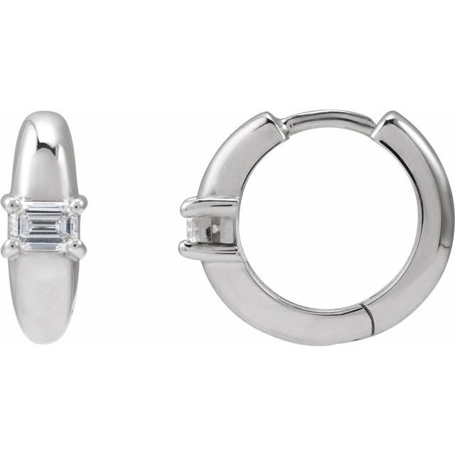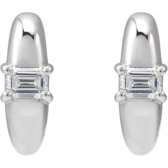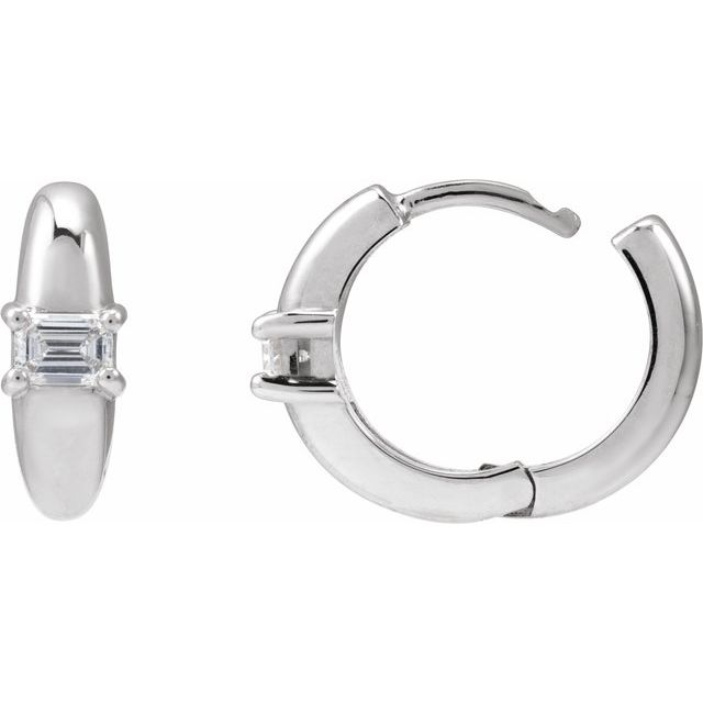 / Earring / Set / Sterling Silver / 13.4 Mm / 4.7 Mm / Lab-Grown Diamond / Emerald / 3.75 X 2.5Mm :: 1/3 Ctw / Vs, Fg / Pair / Hinged / Polished / 1/3 Ctw Lab-Grown Diamond Huggies