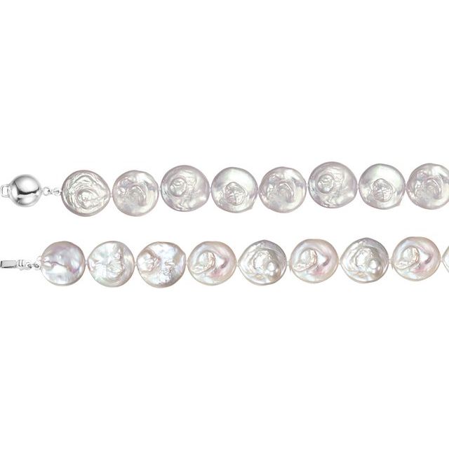 Sterling Silver 13-14 mm Cultured White Freshwater Pearl Coin 18" Necklace