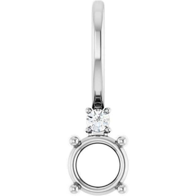 Sterling Silver 4 mm Round .015 CT Natural Diamond Semi-Set Charm/Pendant