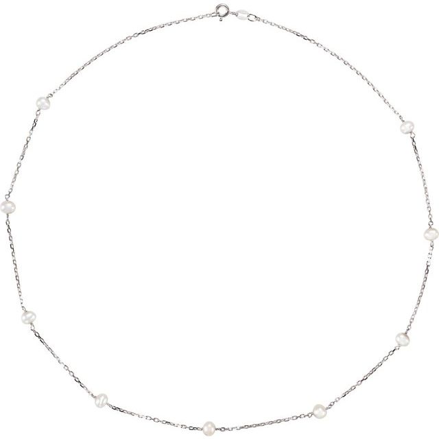 Sterling Silver Cultured White Freshwater Pearl 9-Station 18" Necklace