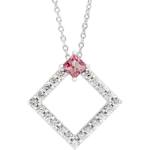 / Necklace / Set / Sterling Silver / Square / Natural Pink Tourmaline / 3.5 X 3.5Mm :: 3/8 Ctw / Natural Diamond / I1, G-H / 16-18 In / Polished / Natural Pink Tourmaline And 3/8 Ctw Natural Diamond Necklace