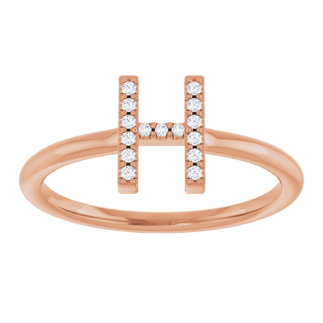 14K Rose .05 CTW Natural Diamond Initial H Ring