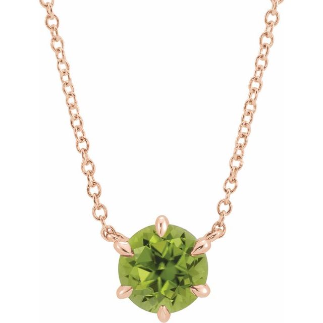 / Necklace / Set / 14K Rose / Round / Natural Peridot / 6 Mm / 18 In / Polished / Natural Peridot Solitaire Necklace