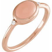 / Ring / Set / 14K Rose / Natural Pink Coral / Oval / 8 X 6 Mm / Natural Diamond / Polished / Natural Pink Coral And .03 Ctw Natural Diamond Bezel-Set Cabochon Ring