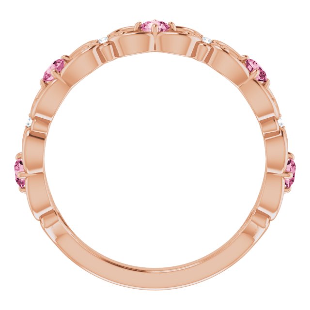 / Ring / Set / 14K Rose / Natural Pink Tourmaline / Round / 2.5 Mm / Natural Diamond / Polished / Natural Pink Tourmaline And .02 Ctw Natural Diamond Ring