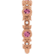 Description: Natural Pink Tourmaline And .03 Ctw Natural Diamond Leaf Pattern Ring