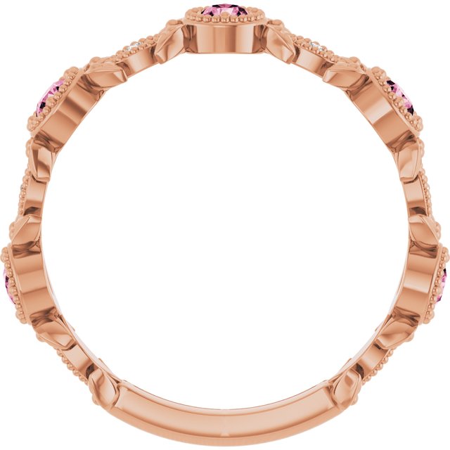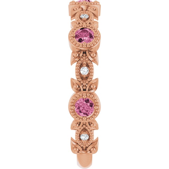 / Ring / Set / 14K Rose / Natural Pink Tourmaline / Round / 2.5 Mm / Natural Diamond / Polished / Natural Pink Tourmaline And .03 Ctw Natural Diamond Leaf Pattern Ring