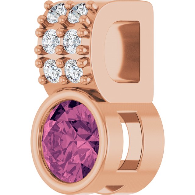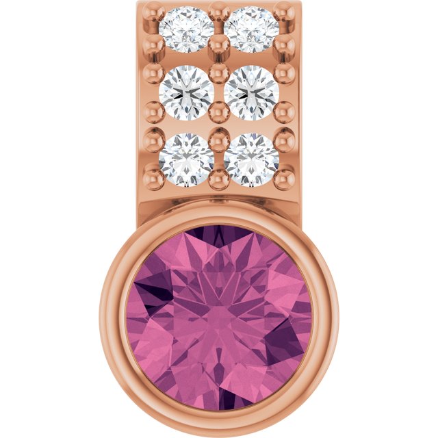 / Pendant / Set / 14K Rose / Round / Natural Pink Tourmaline / 4Mm :: 0.04 Ctw / Natural Diamond / I1, G-H / Polished / Natural Pink Tourmaline And .04 Ctw Natural Diamond Pendant