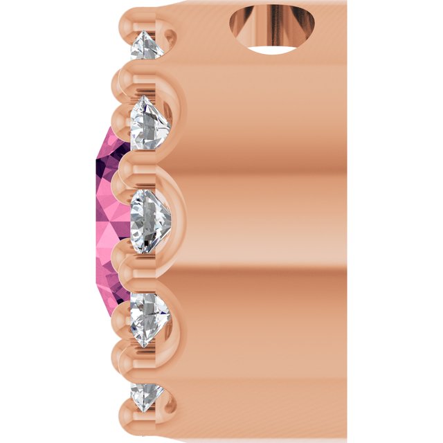 Description: Natural Pink Tourmaline And .08 Ctw Natural Diamond Halo-Style Pendant