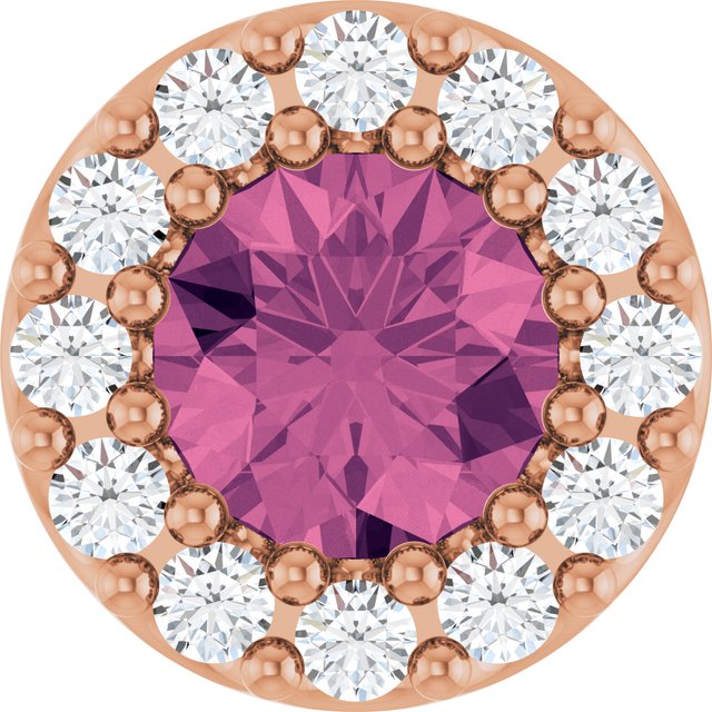 / Pendant / Set / 14K Rose / Round / Natural Pink Tourmaline / 4Mm :: 0.08 Ctw / Natural Diamond / I1, G-H / Polished / Natural Pink Tourmaline And .08 Ctw Natural Diamond Halo-Style Pendant
