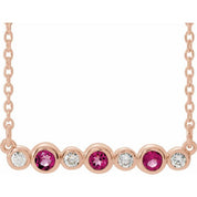 / Necklace / Set / 14K Rose / Round / Natural Pink Tourmaline / 2.25Mm :: 0.08 Ctw / Natural Diamond / I1, G-H / 16-18 In / Polished / Natural Pink Tourmaline And .08 Ctw Natural Diamond Bar Necklace