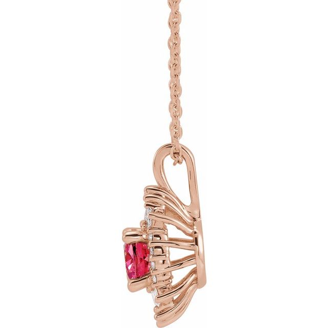 14K Rose Natural Pink Tourmaline & 1/3 CTW Natural Diamond 16-18" Necklace