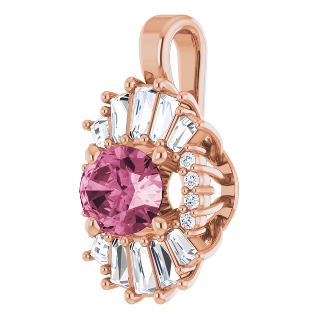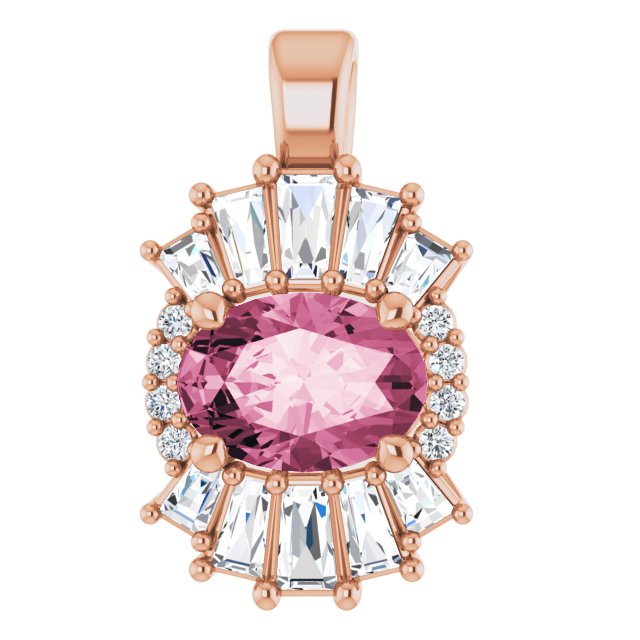 14K Rose Natural Pink Tourmaline & 1/3 CTW Natural Diamond Pendant
