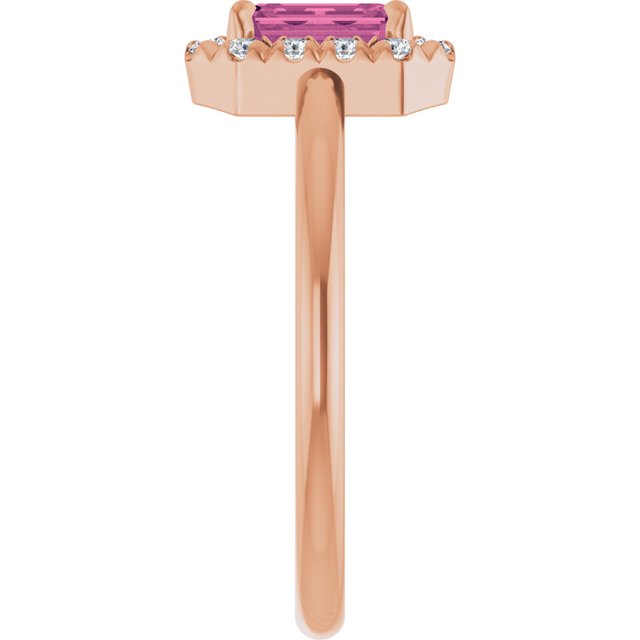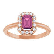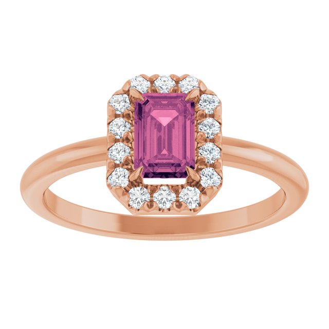 / Ring / Set / 14K Rose / Natural Pink Tourmaline / Emerald / 6 X 4 Mm / Natural Diamond / Polished / Natural Pink Tourmaline And 1/5 Ctw Natural Diamond French-Set Halo-Style Ring