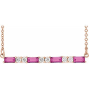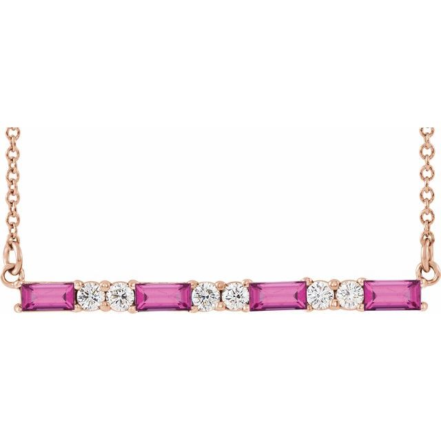 / Necklace / Set / 14K Rose / Straight Baguette / Natural Pink Tourmaline / 4 X 2Mm :: 1/6 Ctw / Natural Diamond / I1, G-H / 16-18 In / Polished / Natural Pink Tourmaline And 1/6 Ctw Natural Diamond Bar Necklace